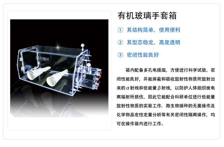 在科學實驗過程中,有些物質在大氣狀態下極易氧化和潮解,這使得試驗物質的化學反應及樣品的前級處理非常困難,影響了試驗過程和測試結果。有機玻璃真空手套箱(又稱真空惰性氣體操作箱)有效地解決了這些問題,該裝置可使試驗樣品能夠安全的放進和取出,并在無氧無水狀態下自如的操作、反應和測試,確保了科學試驗的正常進行。