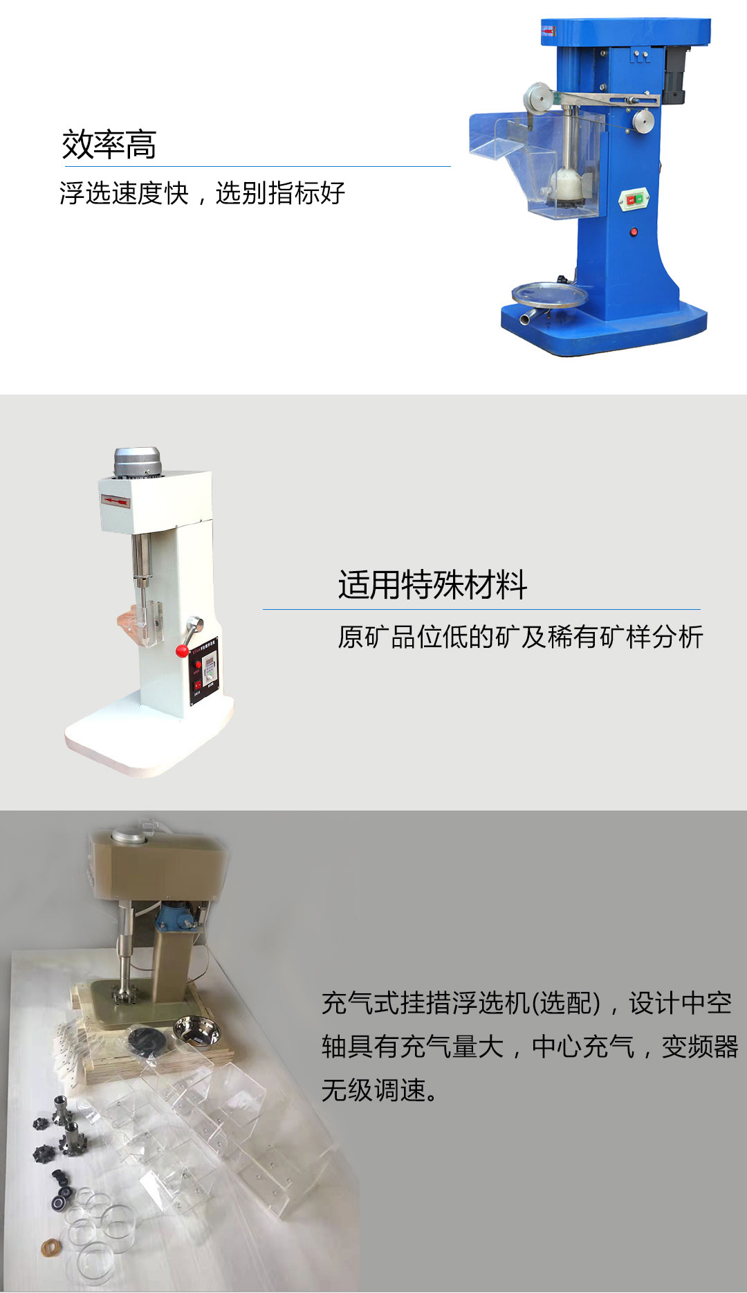 5、充氣式掛措浮選機(選配),設計中空軸具有充氣量大,中心充氣,變頻器無級調速。